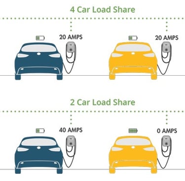 Load sharing is a significant reason why people perceive EV chargers as slow. Typically, four EV chargers are connected to a single breaker. When cars are simultaneously plugged into all four chargers, load sharing splits the total power output among all four cars.